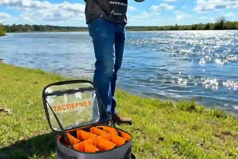 Covering shoreline means miles of walking. Your gear has to ride light, stay organized, and survive brush, sand, and slips. Enter the TACDEFNEX fishing reel bag—padded on all sides with 8 movable dividers.